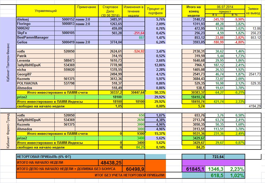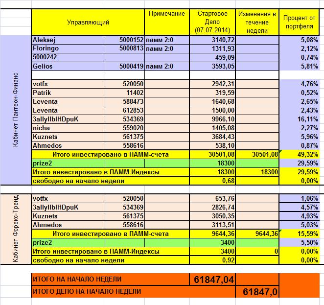 07.07.2014 - 13.07.2014: +259,9$/+0,42% от портфеля !