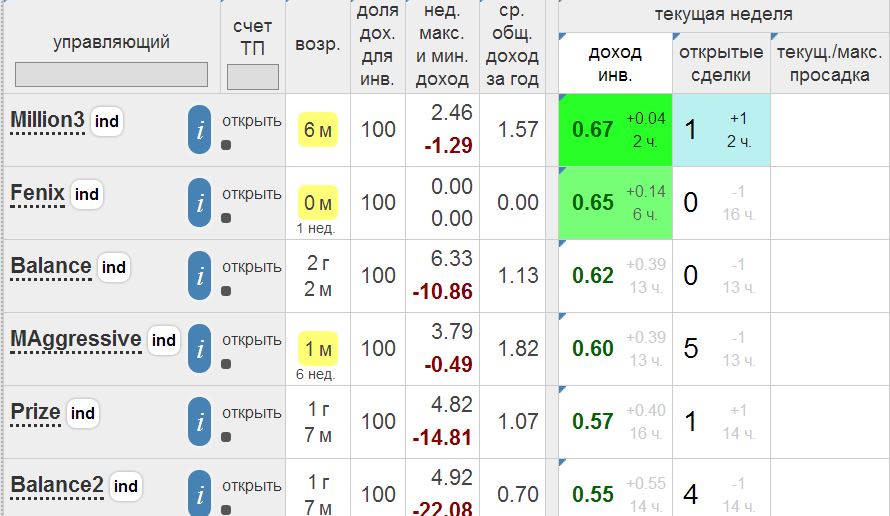 если входить в 3-5 умеренно-агрессивных управов, то доходность будет в среднем на уровле 2.2-2.3% в неделю, редко опускаясь ниже 1%