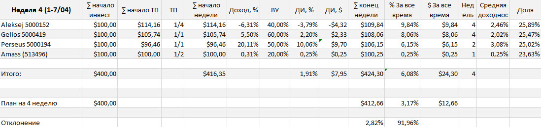 Результат этой недели +1.91% (Спасибо, Персей), план все еще опережаем.