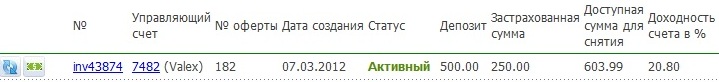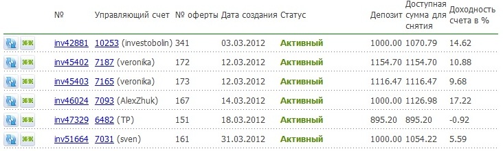За прошедшую неделю с 7 по 11 мая 2012 года была следующая доходность памм-счетов моего портфеля: