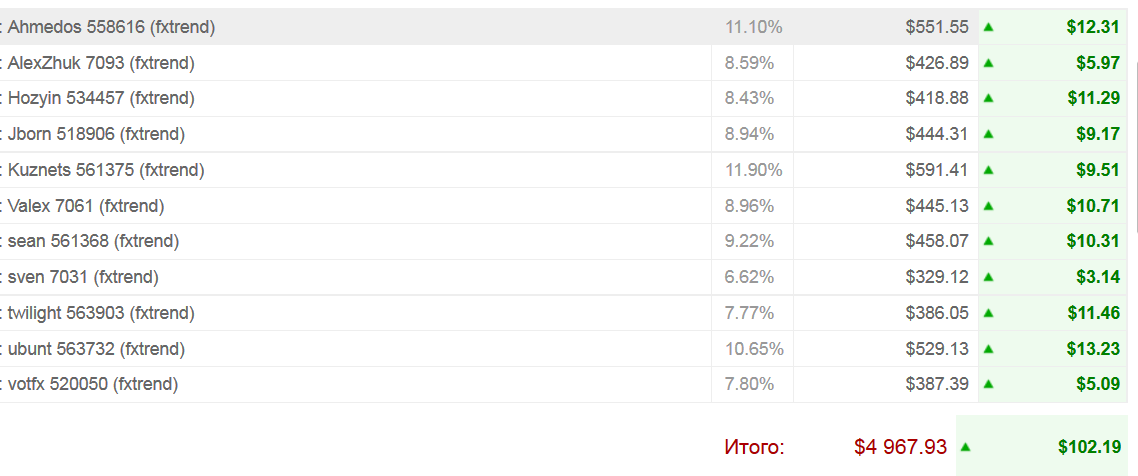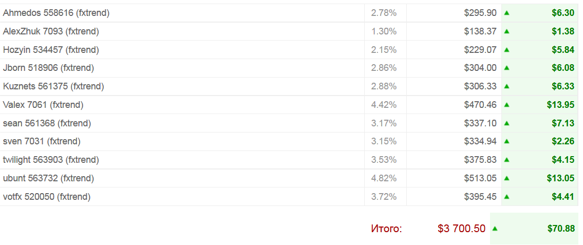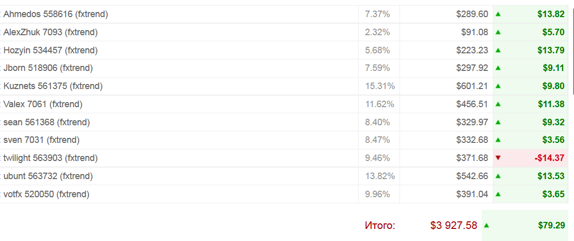 Спасибо за высокую оценку портфеля! Новички последнее время сильно минусуют, на этом фоне резко уменьшились КИ (капиталы инвесторов) почти у всех молодых управляющих. Сейчас многие советуют быть особенно осторожными при инвестировании в условно-периодические счета, тем более у которых ТП (торговый период) - 4 недели.
