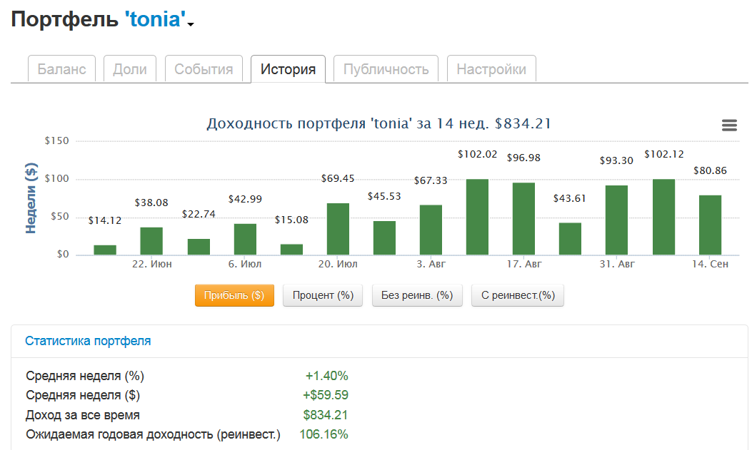 В теме будут публиковаться все изменения по портфелю, а также еженедельные отчеты.