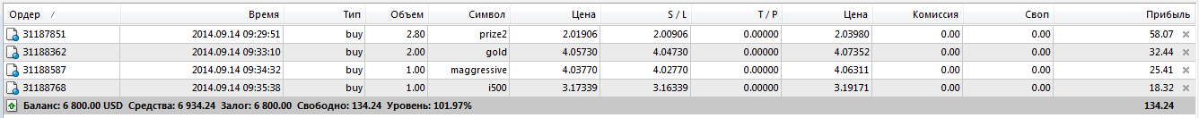Для всех ПАММ-индексов установил стоп-лосс в 1000 пунктов.