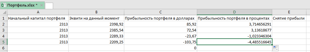 Новая неделя особо не радует в портфеле, в общем Фрейм у нас продолжает просаживаться, не знаю, где он там дно собирается найти, но пока вот так. Остальные не особо повлияли, Профит лайн получил прибыль, Полара практически по нулям, Селдик незначительный убыток, в общем больше всего просаживается Фрейм. Потому у нас общая просадка по портфелю около 4,5 процента.