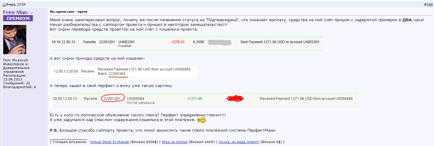 Что то в Вашем предложении определенно есть ,не зря ведь создали внутренний перевод между участниками ,Кстати, если кто-то сомневается в моей честности и кристалльной незапятнанности репутации ( ) я могу предложить выкупать акции небольшими количествами. Хоть по одной! Вы переводите мне деньги за одну акцию, я передаю Вам одну акцию, и так далее, хоть сто раз таким образом мои возможности кинуть Вас резко снижаются . К тому же если я кину хотя бы кого-то одного хотя бы на доллар, этот человек тут же напишет об этом здесь на форуме, и ко мне больше никто не придёт Это к вопросу о гарантиях в том виде, в котором они вообще в данном случае возможны Если кто-то может предложить более безопасную для покупателя схему - пишите, обсудим