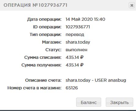Комментарий: Выплата пользователю: MonikTop с проекта Shara.today. Ждем тебя в нашем чате - @sharatoday_chat