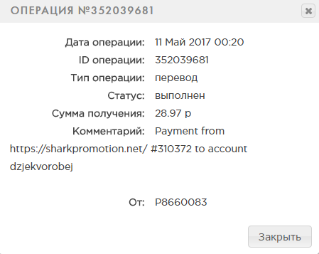 Комментарий Выплата с https://sharkpromotion.net/ #403131 пользователю oldschool74. Благодарим Вас за работу!