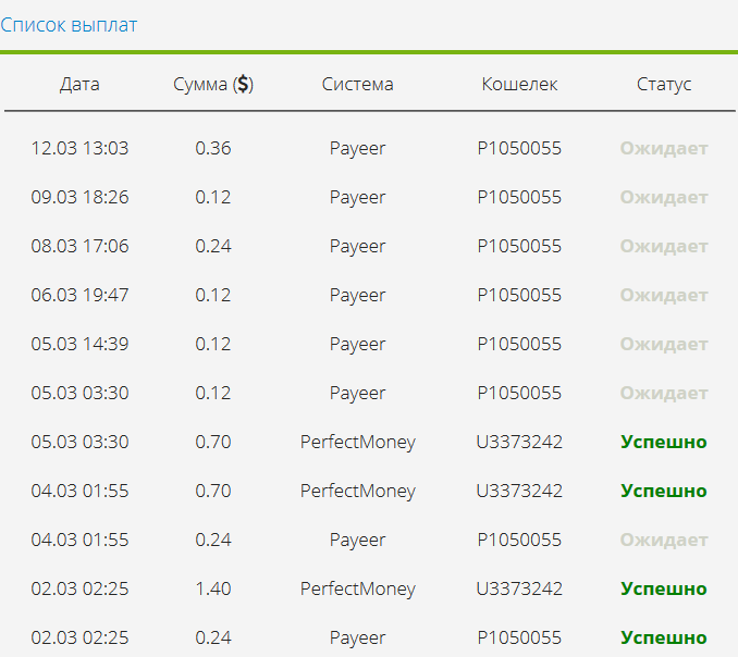 11.03.20 10:07;Account;Receive;Received Payment 0.24 USD from account U13255952 to account U1294000. Batch: 306710319. Memo: API Payment. Выплата с проекта Sitnex для all-hyipsinfo.