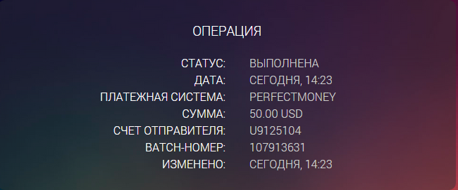 The amount of 1.78 USD has been deposited to your Perfect Money account. Accounts: U4476348->U8******. Memo: API Payment.. Date: 10:01 03.11.15. Batch: 107926962.