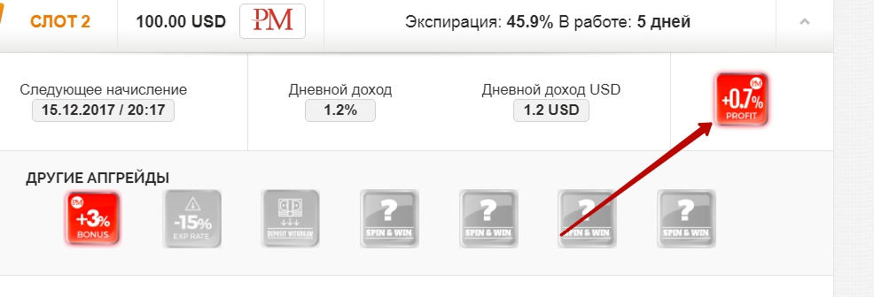 Не знаю, у меня ,как и у всех, все четко приплюсовывается, апгрейды дневной доход применяются в раскрывающимся меню депозита,тут: