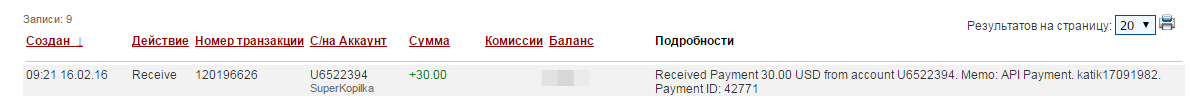 SuperKopilka +10.00 Received Payment 10.00 USD from account U6522394. Memo: API Payment. busyushka1. Payment ID: 42778