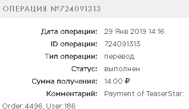 Комментарий: Payment of TeaserStar: Order:7024, User:496