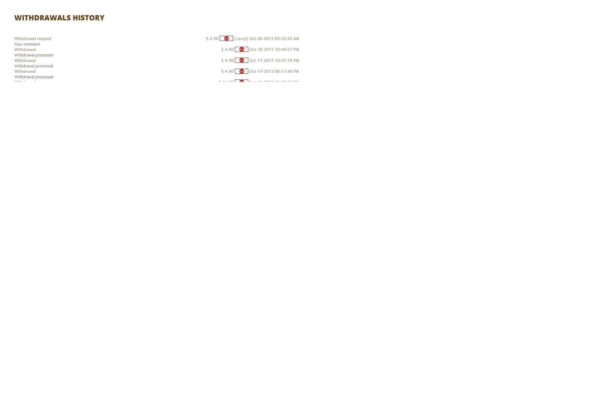 “The amount of 0.7 USD has been deposited to your Perfect Money account.