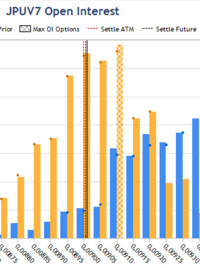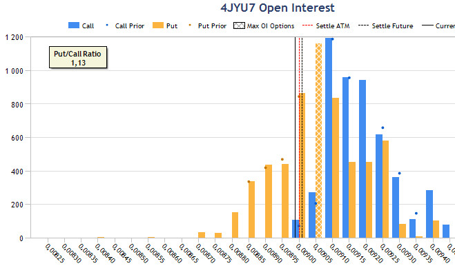 Опционы текущего месяца и недели почти совпадают по максимальному интересу уровней продавцов. Котровки находятся за ними, поэтому любой движение в сторону роста приближает разворот. На этой неделе трейдерам предстоит "отыграть" решение Центробанка Японии по ставке. Вызовет ли оно укрепление иены?