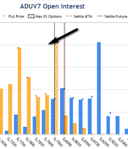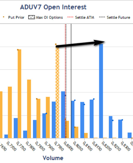 За последнюю сессию произошел рост открытого интереса опционов Call, способный поменять расположение максимума. При этом цена окажется не за уровнем, а межжду двумя ОИ - продавца и покупателя, что откроет возможность падения пары.