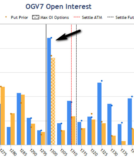 Несмотря на преобладание максимума в опционах CALL цена откатывает назад, уровень 1300, как точка притяжения.