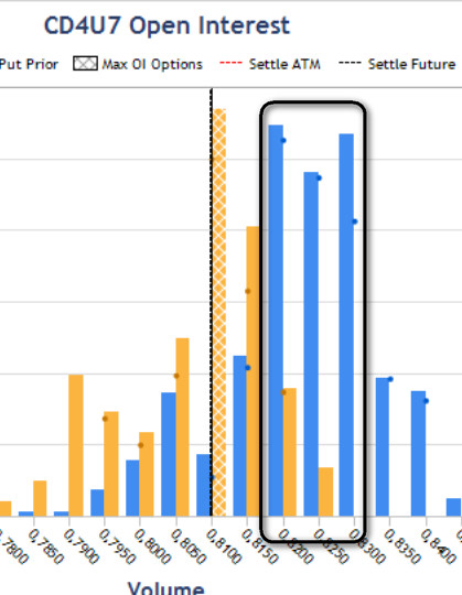 Пара находится под прицелом новостей сегодня. Банк Японии озвучил свое решение по ставке. Политика Регулятора не меняется уже давно, поэтому трейдеры ждут ослабление национальной валюты, о чем свидетельствует падающий с каждым верхним страйком, Открытый Интерес