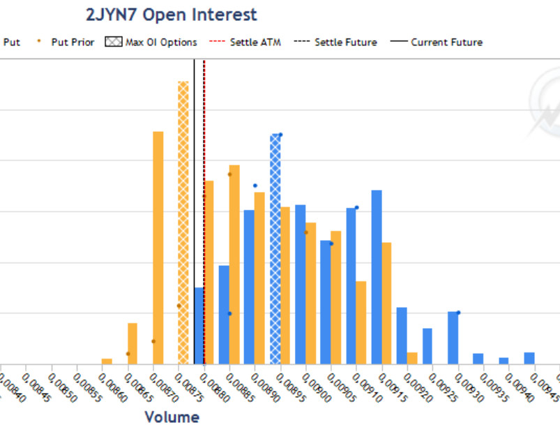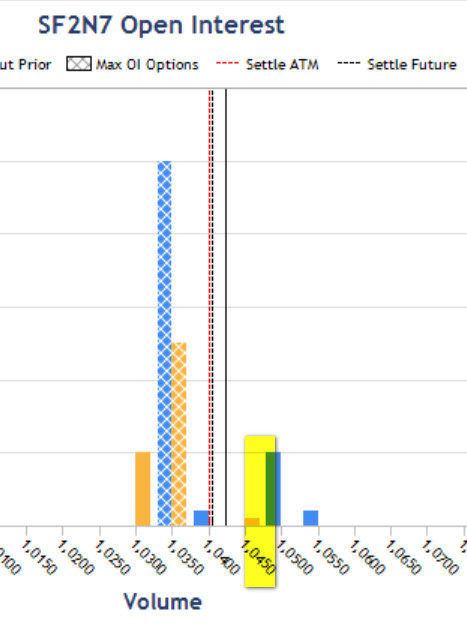 Сами по себе (без премий) уровни с высоким ОИ играют роль сопротивлений и поддержек (магия круглых цифр) . Правда это касается только уровней опционов, сроком в месяц. Как было вчера показано, многие валютные пары, в том числе швейцарский франк, достигли подобных уровней, поэтому ждем либо флэт либо "общий отскок" по рынку Форекс: