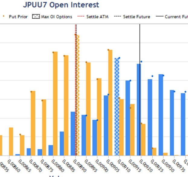 Недельные уровни опциона австралийца показали высокий рост опционов пут. На каждом уровне с шагом в 50 пп, падающая цена встретит сопротивление. С одной трейдер может предполагать провал попытки падения, с другой - опасаться что максимальный открытый интерес перероллируется ниже.