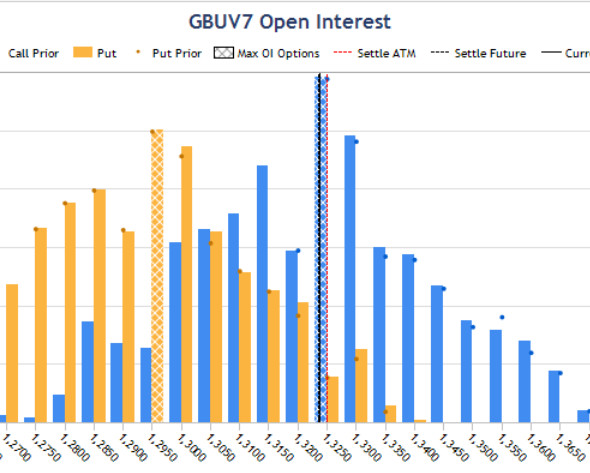 Вчера стартовали недельные опционы. Текущие котировки в паре EUR/USD находятся между двумя максимумами Открытого Интереса. Соотношения размеров гистограмм ОИ продавцов и покупателей, говорит в пользу последних, что намекает на рост к уровню 1.2250