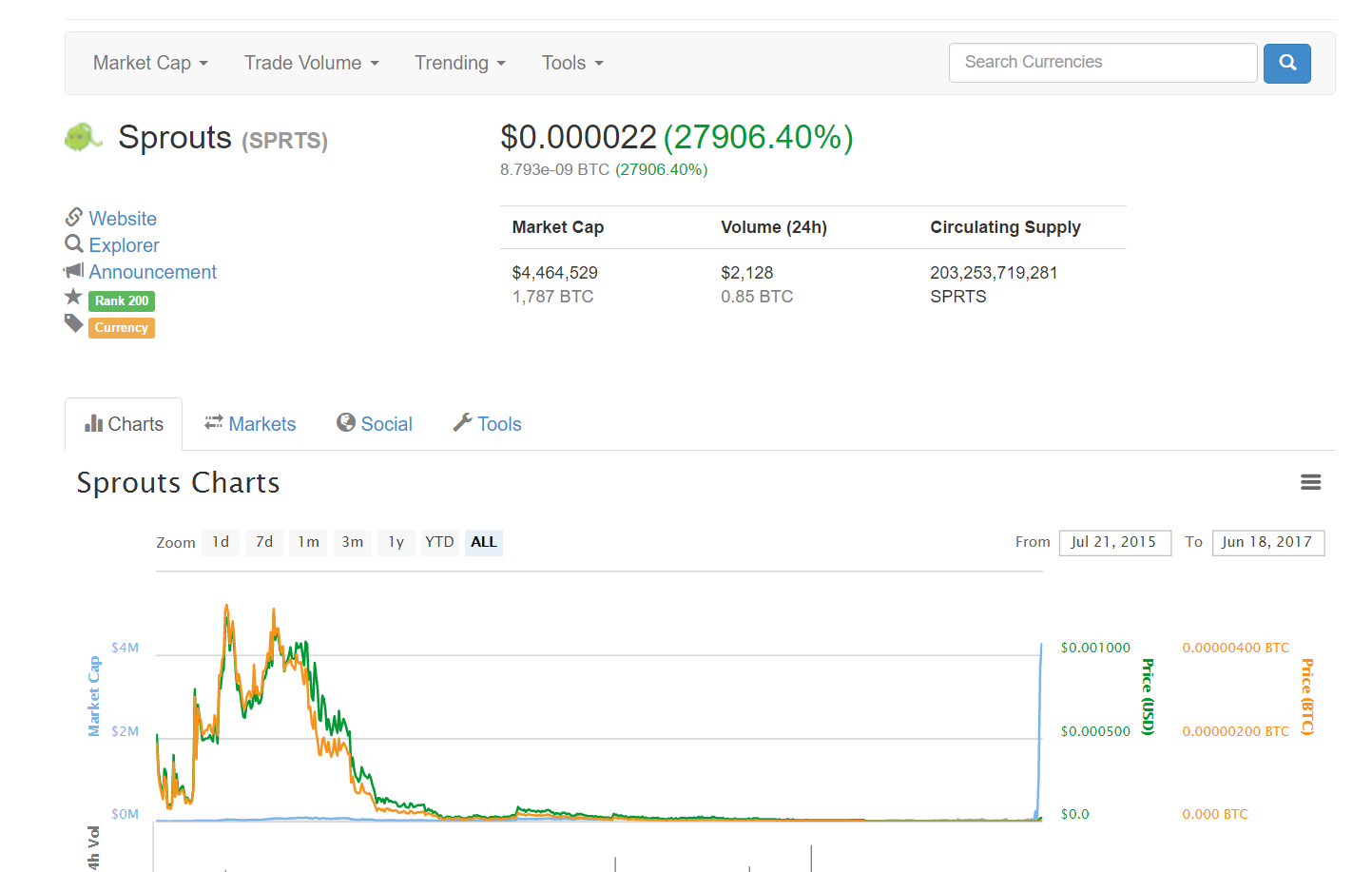 Ну и ну! Соревнование в тыс процентов роста.Sprouts (SPRTS) 27906.40%