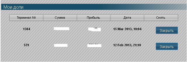 Не вижу кнопку Закрыть в Мои доли. Договор не заказан. Доли от декабря 2012. У кого отображается выложите скрин, плиз.