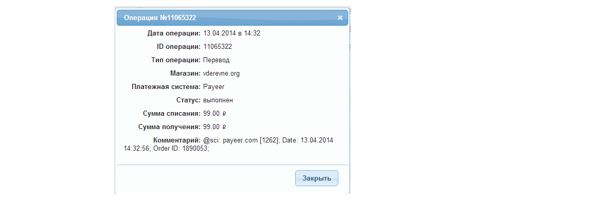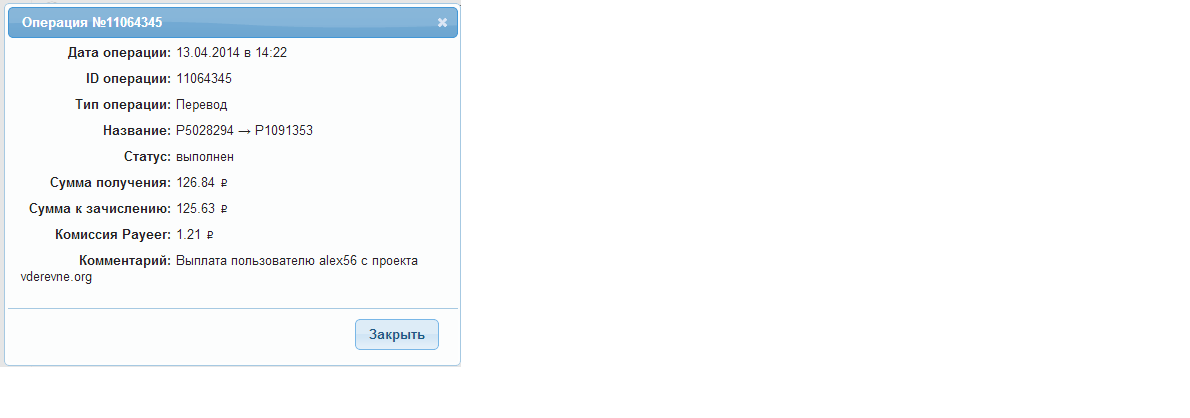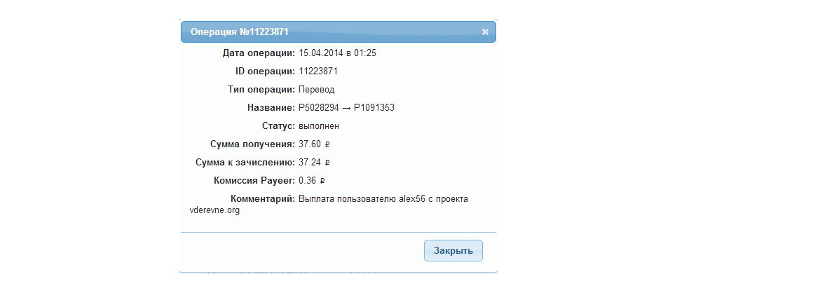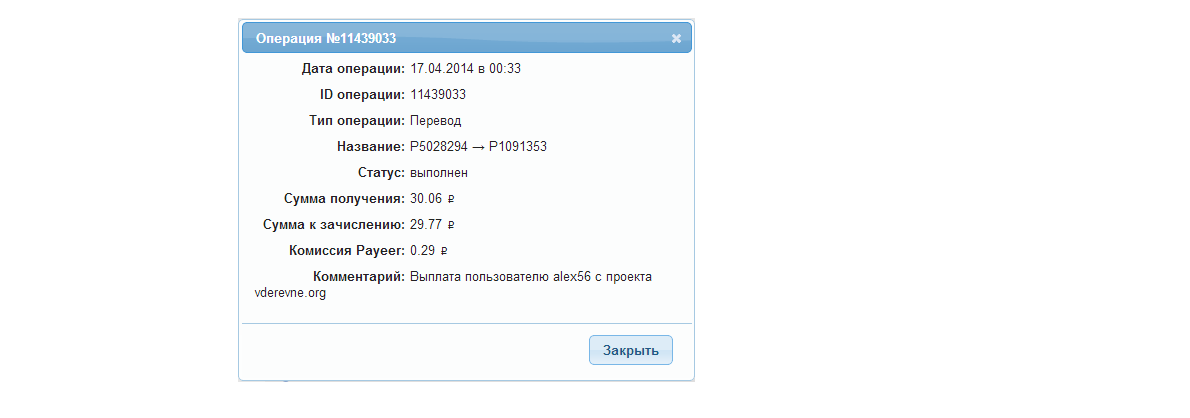 Выплата пользователю leonleon с проекта vderevne.org