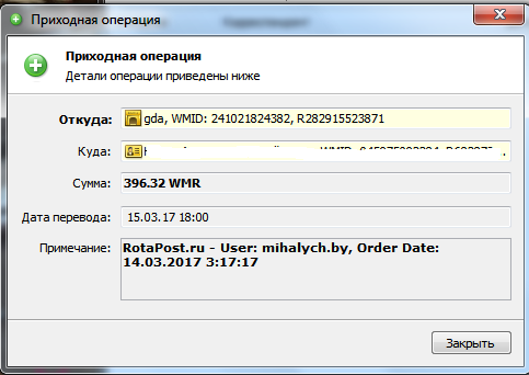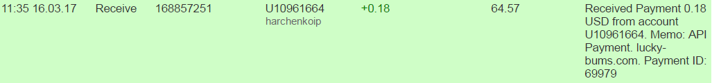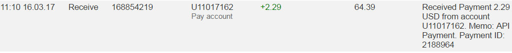 18.03.17 20:04 Received Payment 0.5 USD from account U8** to account U7**. Batch: 169202293.