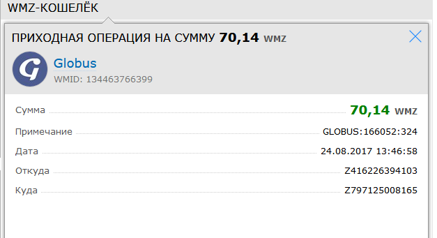 The amount of 1.02 USD has been deposited to your account. Accounts: U1233988->U7264***. Memo: Оплата за сообщения. Date: 12:25 28.08.17. Batch: 186266422.