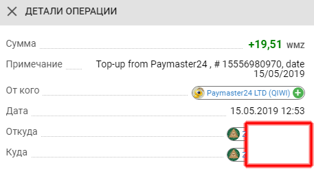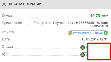 NoteЗачисление N: 123697590113809864 / 700025 - 3 (ВРБ), номер чека: 123697590113809864 от 15/05/2019 (Пополнение Н-ЭСП: 93456047140 по заявке: 1878041)