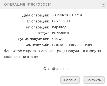 - циклер Nanospinner (первая)The amount of 9 USD has been deposited to your account. Accounts: U4962269->U194****. Memo: API Payment. Ad Click Xpress Withdraw 133850-195850.. Date: 19:16 08.06.19. Batch: 265693651.