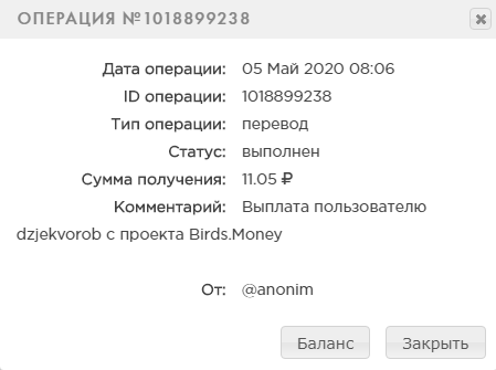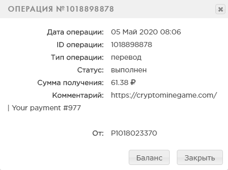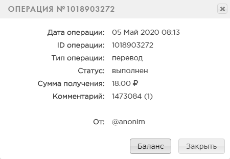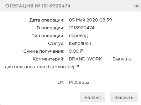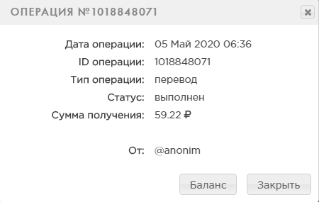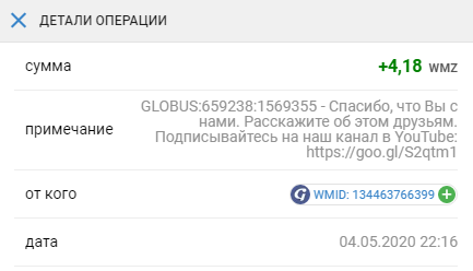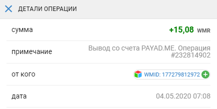 The amount of 4.99 USD has been deposited to your account. Accounts: U1345225->U194****. Memo: Payment from www.GAB.ag. Date: 05:26 05.05.20. Batch: 313592802.