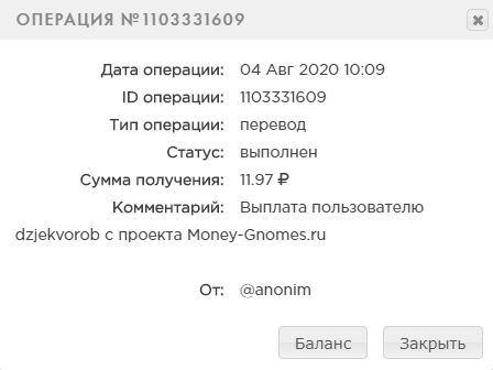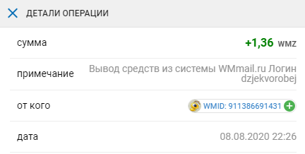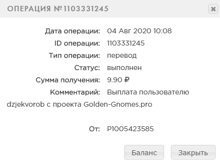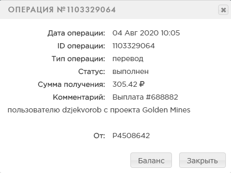 The amount of 4.91 USD has been deposited to your account. Accounts: U1345225->U194****. Memo: Payment from www.GAB.ag. Date: 06:01 05.08.20. Batch: 327522383.