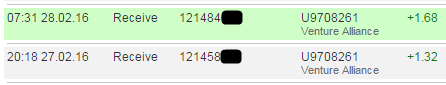 20:11 28.02.16 Receive 121551009 U9708261 Venture Alliance Payment 0.3 USD