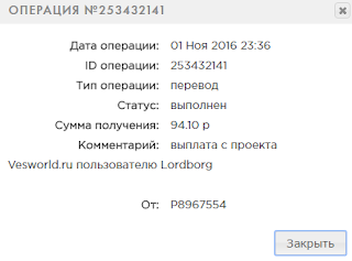 Комментарий: выплата с проекта Vesworld.ru пользователю Profmonito
