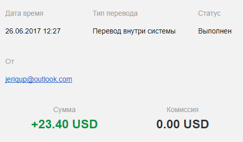 06.26.17 19:54 Account Receive +1.00 Received Payment 1.00 USD from account U14989267 to account U124***.