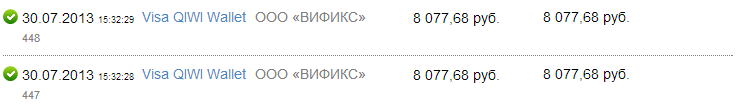 07.28.13 21:52 Account Receive +447.75 Received Payment 447.75 USD from account U4576*** to