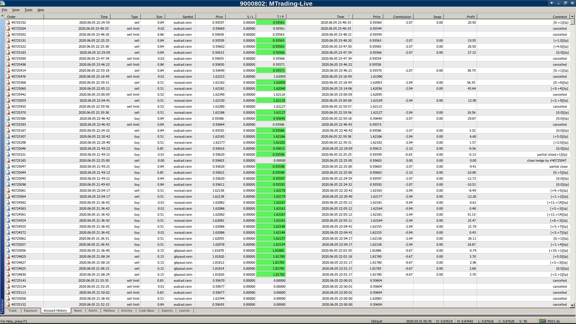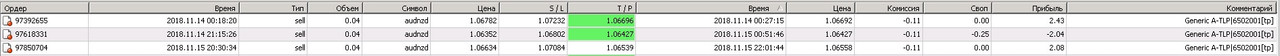 На картинке тейкпрофиты первых двух ордеров исполнились правильно (с нулевыми или положительным проскальзыванием). А вот третий ТП исполнился неправильно и проскользил в минус на 1.9 пункта. (Запись [tp] есть в конце комментария, а поле ТП не загорелось зелёным)
