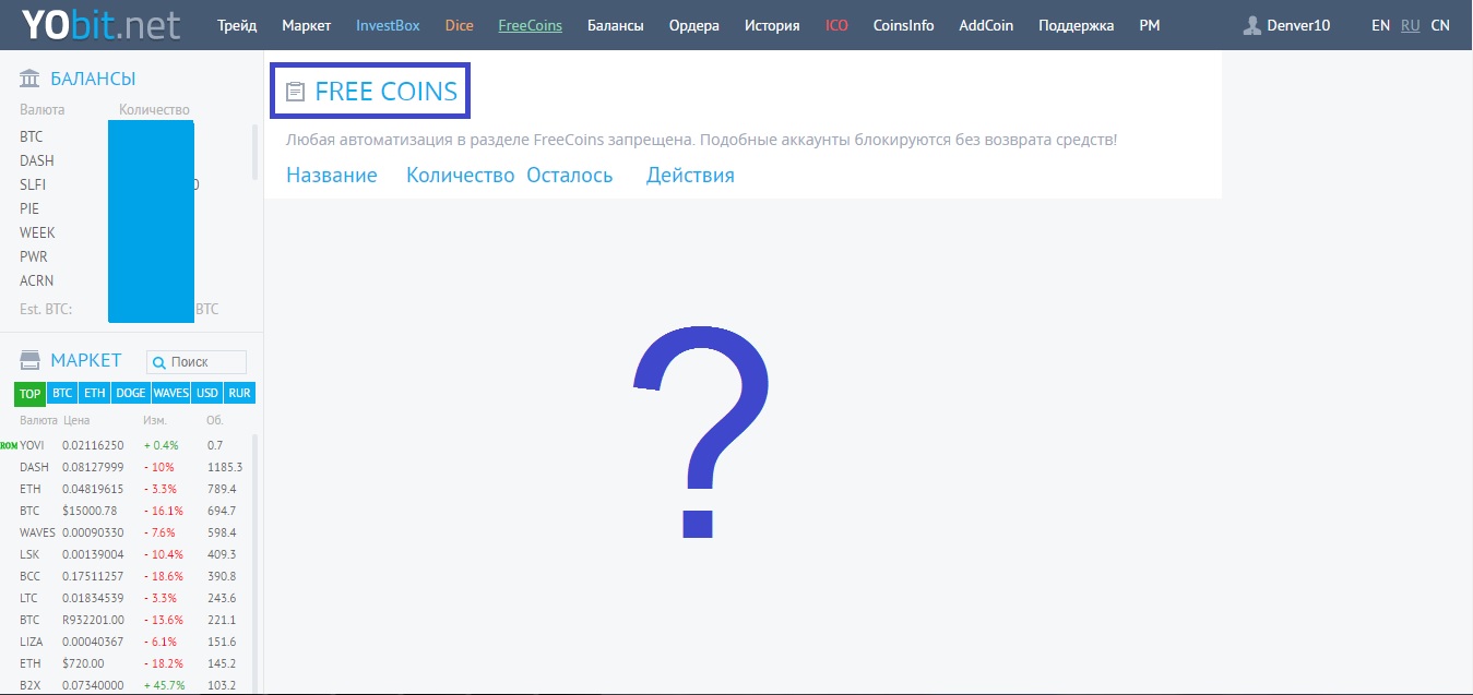 сейчас все отображается, но при нажатии синей кнопки "Получить" (крипту) напротив соответствующей предлагающейся крипты, ничего не происходит. не выдают крипту. и это происходит уже как минимум 3-тий день. бред какой-то.