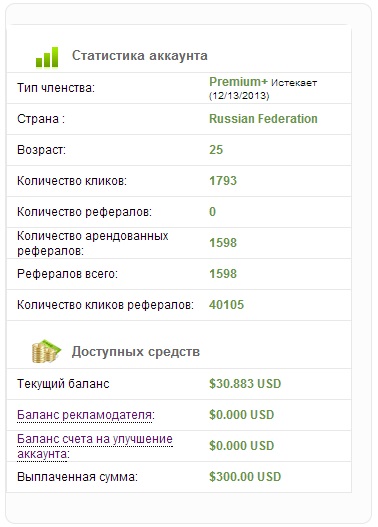 сегодня вышел в ноль (пол месяца, дирректов нет), до 13 числа премиум так что пару недель еще будет капать чистый профит. Ну и плюс не учитываю еще 150% рефбэка (30$) - так что даже в плюсе уже нахожусь