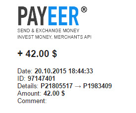 21.10.15 12:06 Transfer Sent Payment: 1.00 USD to account U7980194 from U9675354. Batch: 106091572. Memo: Shopping Cart Payment. 1.00 Лавагет.