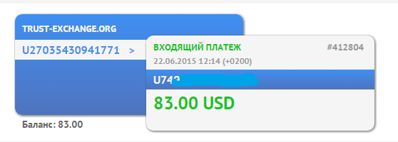 The amount of 50 USD has been deposited to your Perfect Money account. Accounts: U8332551->U77*****. Memo: API Payment. Перевод денег из Webtransfer-finance.com кошелек №99676673.. Date: 12:07 22.06.15. Batch: 92658822.