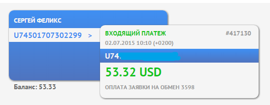 Деньги списались: Ваша заявка на внутренний перевод средств была обработана и средства зачислены на кошелек Пользователя: