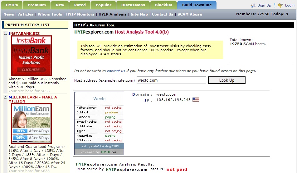 07.08.13 00:54 Receive Received Payment 10.00 USD from account U4656748 to account U1338028. Batch: 30244926. Memo: API Payment. Withdraw to hyiphotlister.com from wectc.com.