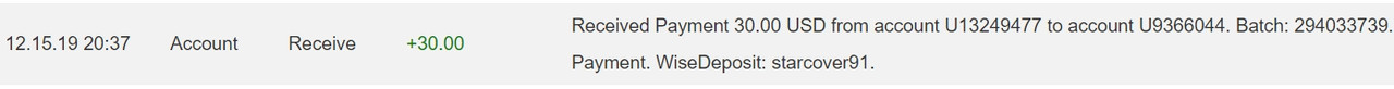 The amount of 10.02 USD has been deposited to your account. Accounts: U13249477->U3655. Memo: API Payment. WiseDeposit: ariuntrius.. Date: 20:38 15.12.19. Batch: 294033762.