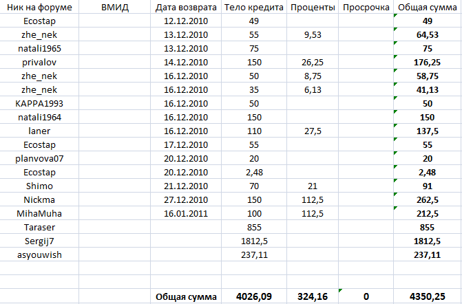 Отправил уточнения по долгам в личку.Если что-то не правильно указал, то прошу отписаться в личку или здесь.