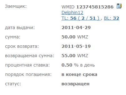 - сумма 20-100wmz под 0.5% в день
