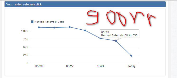 До последнего дня график был почти ровный. Сегоня АВГ заметно снизился. С 1900 РР - 1916 кликов. Хотела докупить последнюю партию...Но наверное уже не стоит. Буду только продлевать.