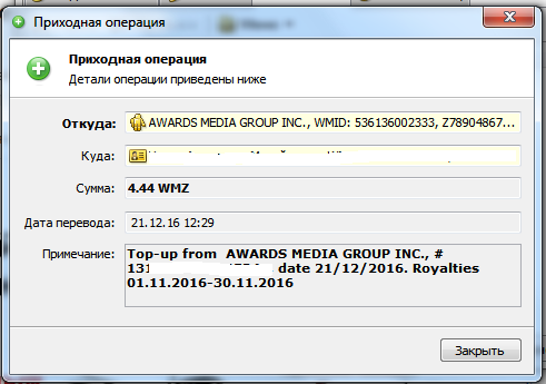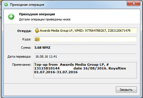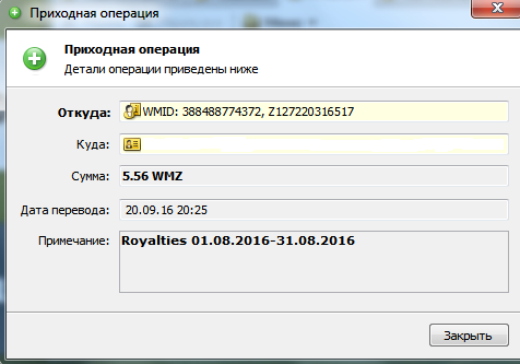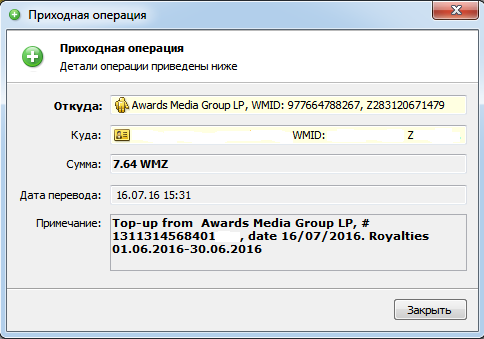 Очередная выплата. Но почему-то сменился отправитель платежа. Да и выплата пришла весьма поздно - 20 числа. Обычно раньше всегда платили до 16.