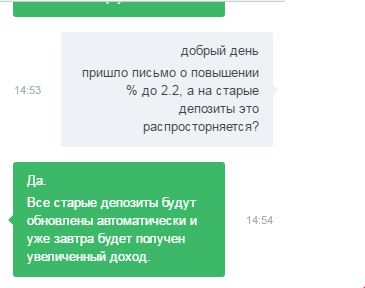 Благодаря этим успехам и развитию стратегии “Эволюции успешности человечества” в целом, мы сделали возможным улучшение также нашего инвестиционного предложения. Мы предлагаем по-прежнему до 14% в день, но нижняя планка доходности теперь равна 2.2% пассивной чистой прибыли ежедневно. Для всех старых и новых инвесторов этого плана. Депозиты всего от $50. Так что, добро пожаловать. Также не забывайте о доступном плане группы После с возвратом 750% на депозит минимум в $100 через 75 дней.
